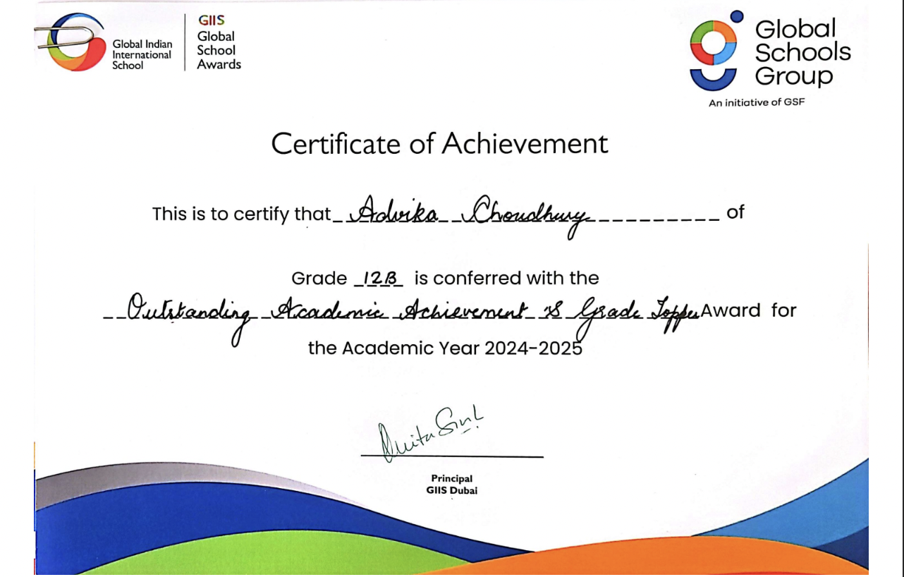 In 2023, I had the privilege of representing my school at the Emirates Environmental Group’s Inter-School Public Speaking Competition. Out of a strong field of schools across the UAE, my team and I secured third place — an experience that strengthened both my confidence as a speaker and my belief in the power of collaborative effort.